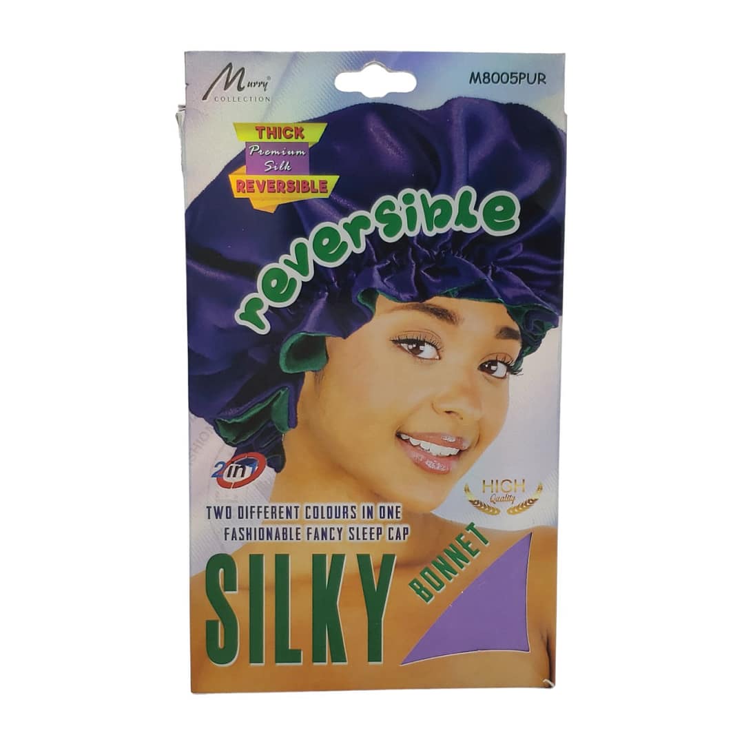 The Murry Thick Reversible Silky Bonnet M8005PUR is a stylish and functional hair accessory designed to protect your hair while you sleep. Made from high-quality satin material, this bonnet is soft, smooth, and gentle on your hair, reducing friction and preventing frizz and breakage. It features a thick, double-layered design that provides extra protection and warmth during colder nights. The reversible feature allows you to switch between two different colors, adding versatility to your nighttime routine. With its adjustable elastic band, this bonnet fits comfortably and securely on any head size. Whether you have curly, straight, or textured hair, this bonnet is a must-have for maintaining healthy and beautiful locks. Say goodbye to bedhead and hello to silky, smooth hair with the Murry Thick Reversible Silky Bonnet M8005PUR.