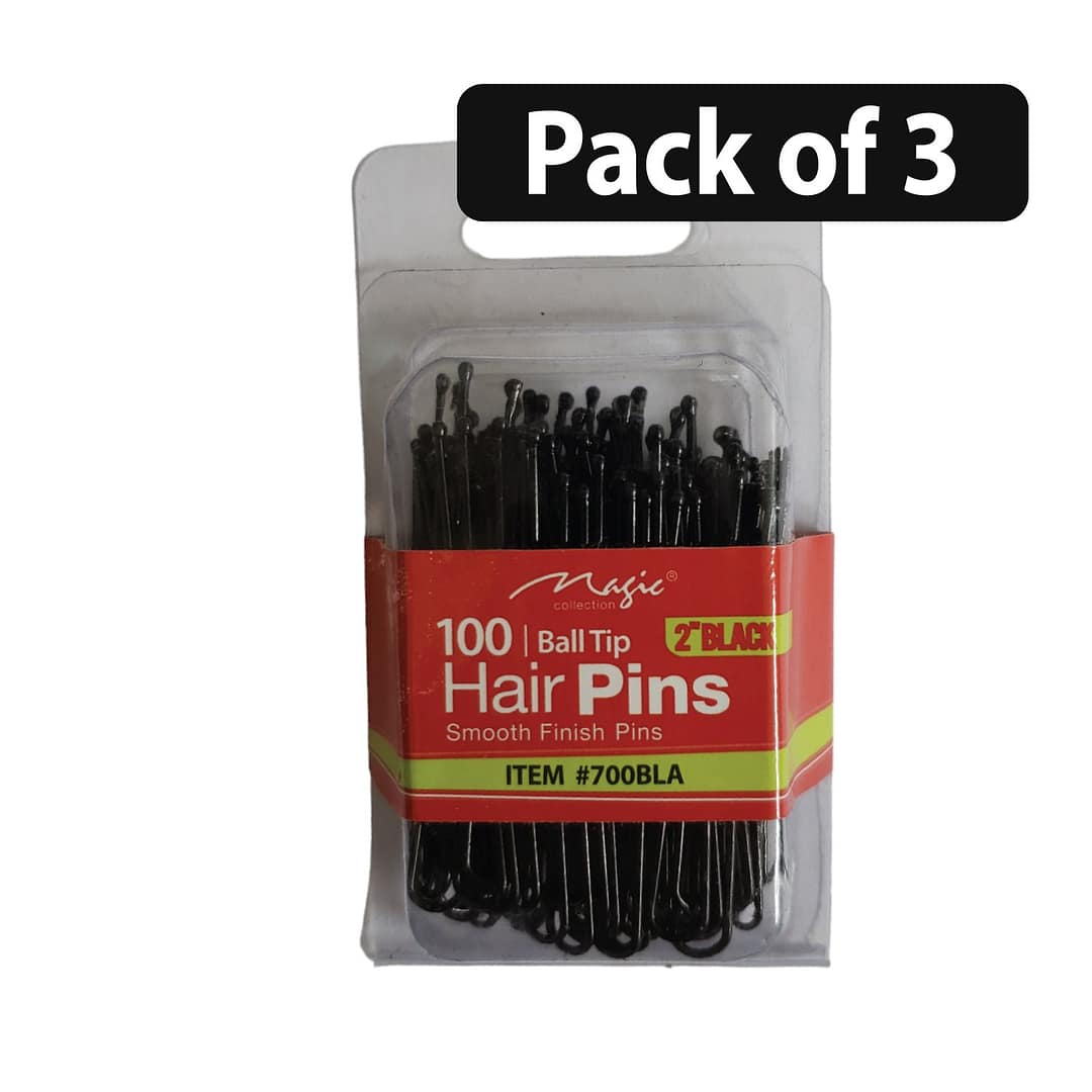 (Pack of 3) Magic 2”Black Ball Tip Hair Pins 100 #700BLA