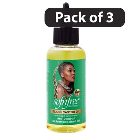 Sofn’Free BCO Anti-Dandruff Moisturising Braid Oil 100ml is specially designed to soothe itchy scalp, eliminate dandruff, and hydrate hair and braids. Infused with Black Castor Oil (BCO) and anti-dandruff agents, this lightweight, non-greasy formula moisturizes the scalp, reduces dryness, and promotes a healthy, flake-free scalp without build-up.