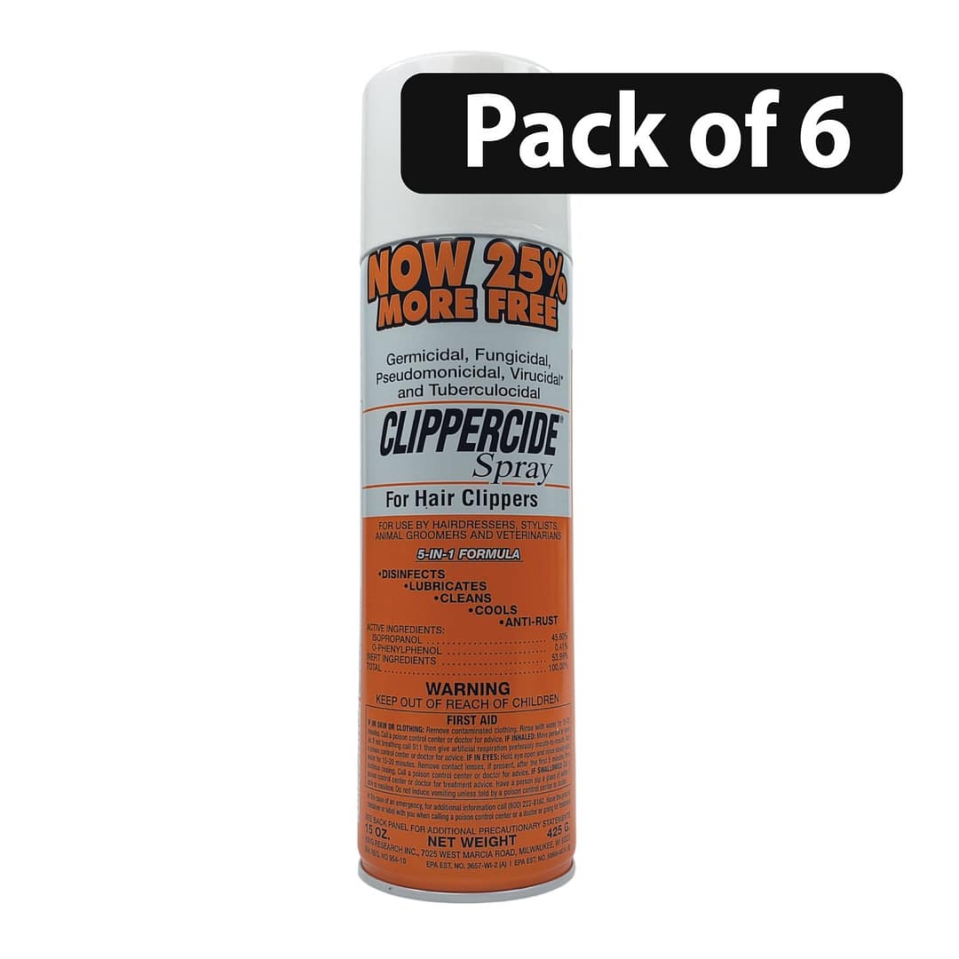 You're viewing: (Pack of 6) Clippercide 5-in-1 Clipper Spray Disinfectant 425g