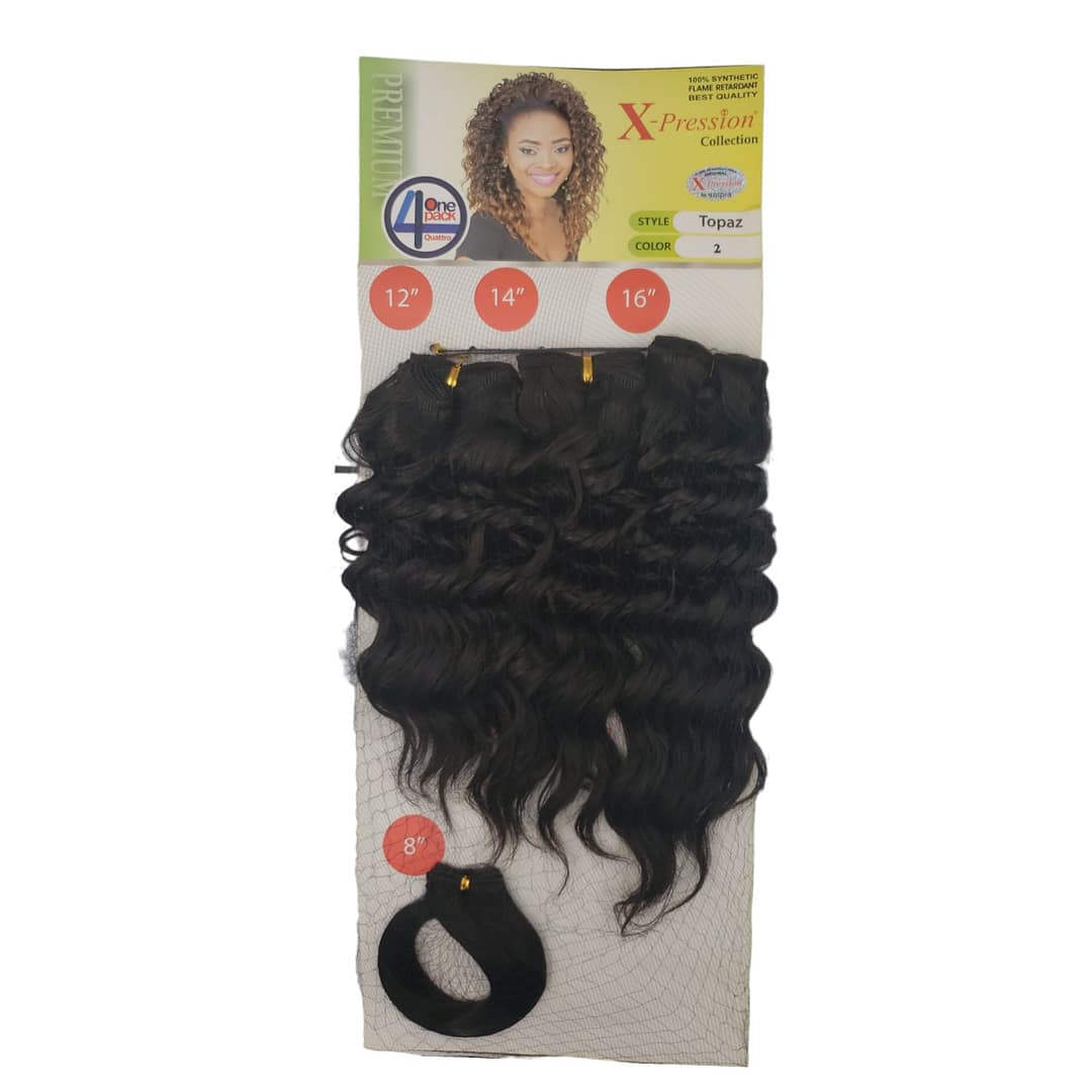 The Xpression Topaz 4 One Pack is a versatile hair extension that provides a natural and glamorous look. Made from premium synthetic fibers, this pack includes four bundles of hair in a beautiful topaz color. With its easy-to-use clip-in system, this hair extension can be effortlessly applied and styled for any occasion. It consists 8″, 12″, 14” and 16” in one pack.